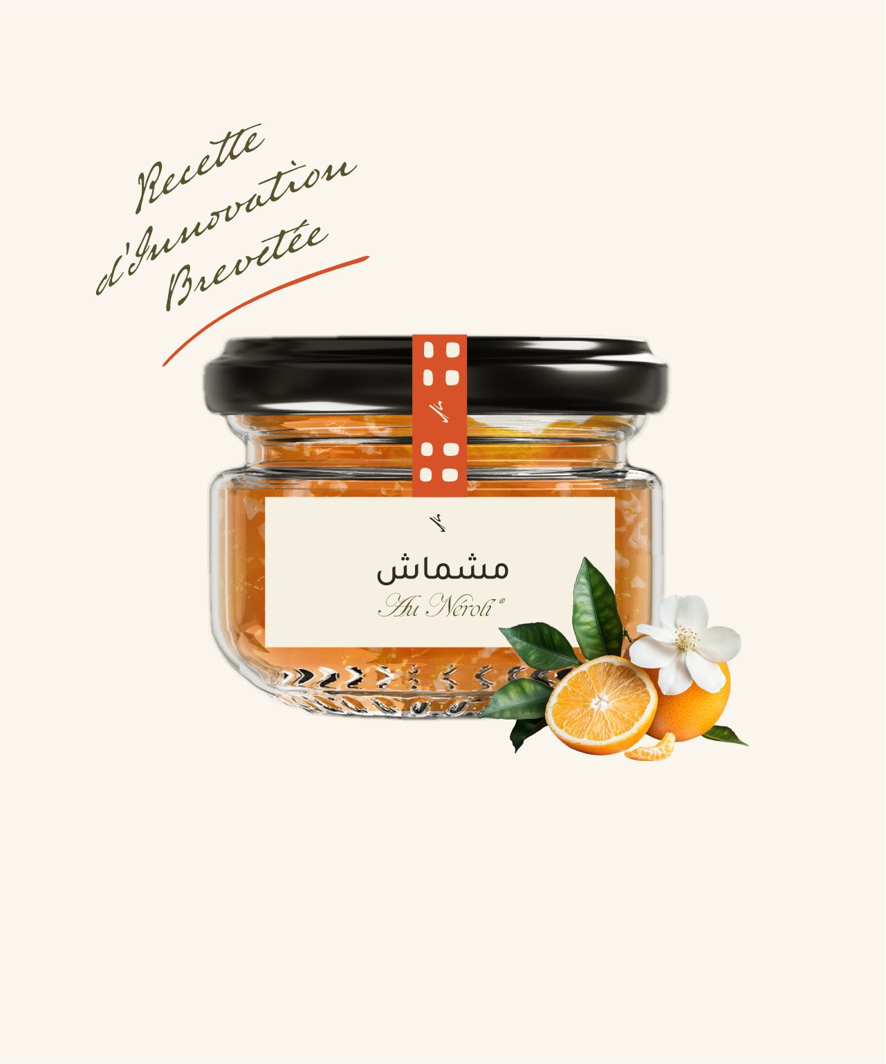 • Oula Un pot de confiture de fraises à l’eau de rose, avec une texture riche et une étiquette élégante en arabe et en français.