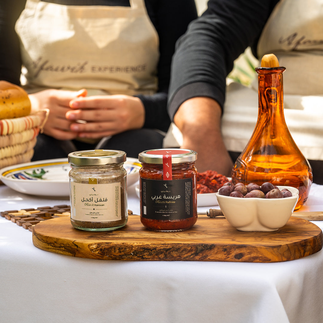 Les Ateliers Cooking Dyeri d’Afawih sont une invitation à redécouvrir l’authenticité de la cuisine tunisienne. Chaque session est un voyage sensoriel où l’on explore des recettes zemneyin, sublimées par nos mélanges d’épices maison ou notre Harissa Arbi, préparée dans la plus pure tradition. Un moment de partage où les secrets des saveurs d’antan se transmettent, de génération en génération.